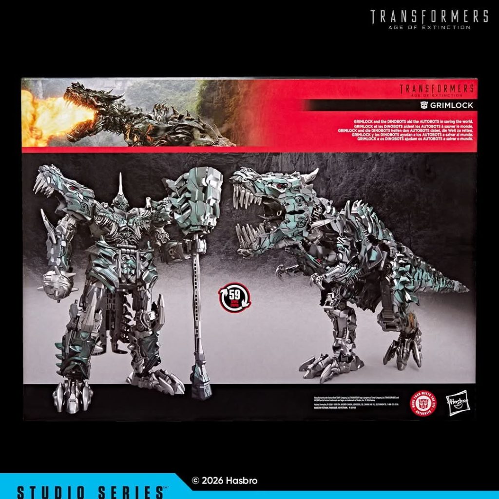 Standing roughly 15 inches tall in robot mode, Grimlock brings the scale and presence collectors expect from the legendary Dinobot leader. The figure converts between robot and ferocious T-Rex mode in 59 steps and features movie-inspired sculpting based on his explosive appearance in Age of Extinction.