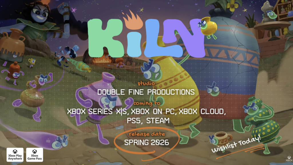 | Kiln | Double Fine | Multiplayer Brawler | Spring 2026 | Xbox Series X|S, PC, Cloud, PS5, Steam |